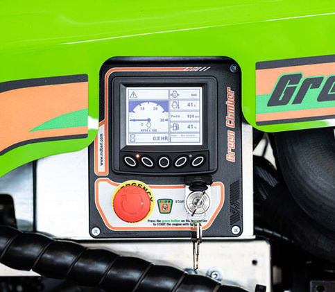 Gracias al tren de rodaje de anchura variable, que puede ajustarse directamente desde el mando a distancia, Green Climber consigue una estabilidad inigualable en terrenos irregulares y escarpados.